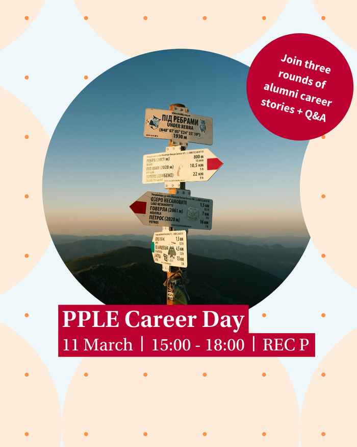 Join us on 11 March 2026 for the PPLE Career Day: An afternoon of alumni insights, honest reflections, and plenty of Q&A on career choices, master’s decisions, and practical tips on how to break into different fields.